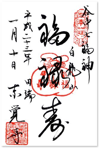 ▼白龍山 東覚寺(真言宗豊山派・東京都北区田端) 谷中七福神・福禄寿の御朱印です。 記念すべき第1体なのですが、この時点では朱印収集の考えはなかった。 だから「感慨一入」というわけではない。 ▼本当は谷中七福神のカラフルな色紙を求めようとしたので…