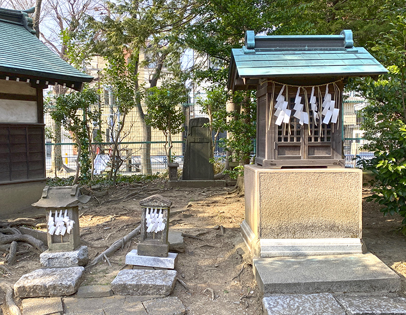 ▼「白狐殿」の右側にも古い石祠が二つと小さい社が一つ。