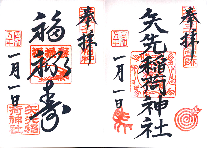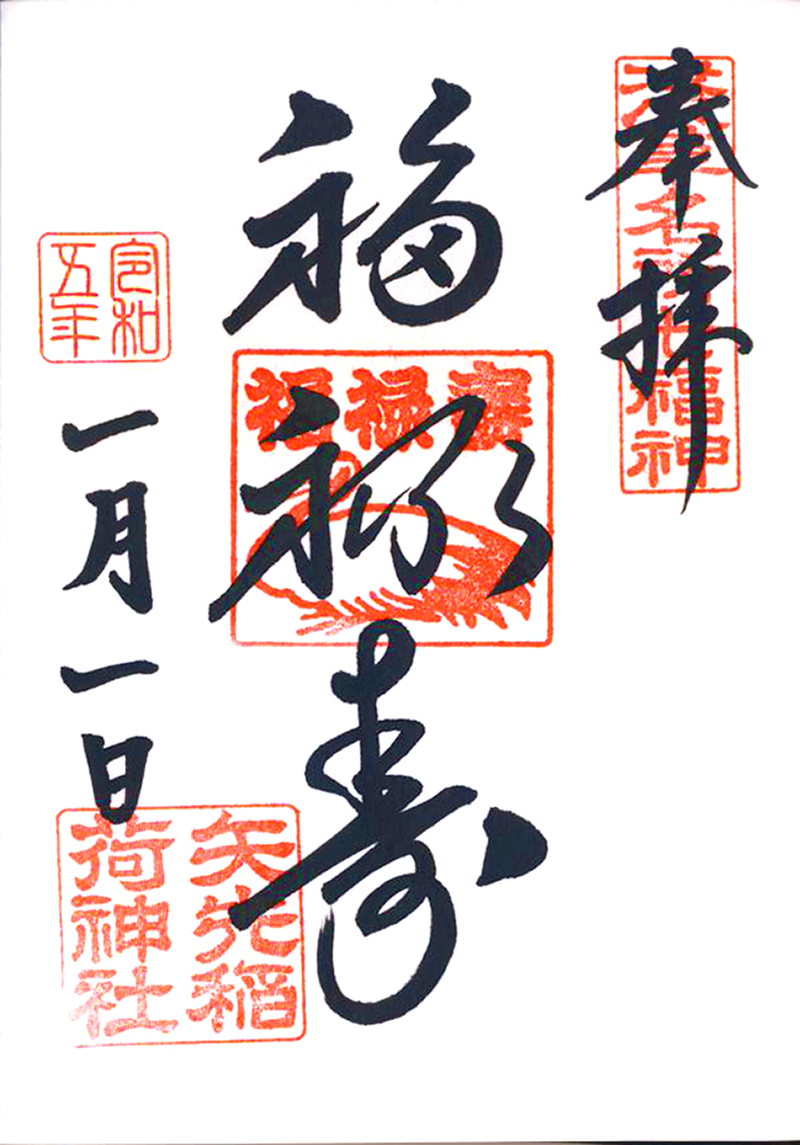 ▼矢先稲荷神社 「浅草名所七福神 福禄寿」の御朱印(2023年)。