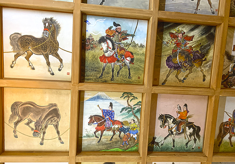 左下「馬」の甲骨文字は、当社の社殿天井画「日本馬乗史」に由来するのでしょう。